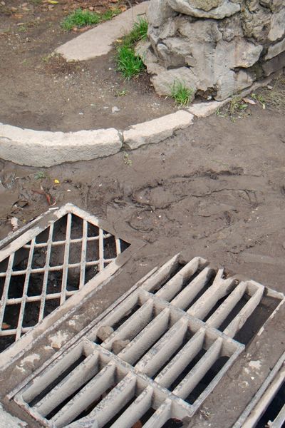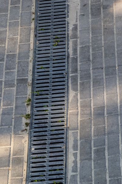Cities manage surface drainage on a large scale through a network of stormwater drains, detention basins, and treatment facilities to control the flow of rainwater and prevent flooding.